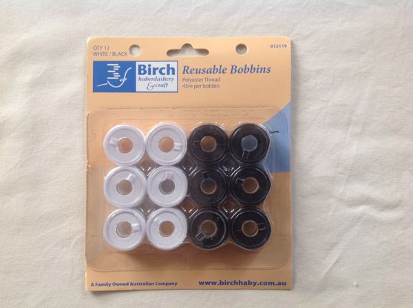 Birch Reusable Polyester Thread Bobbins - Black and White
