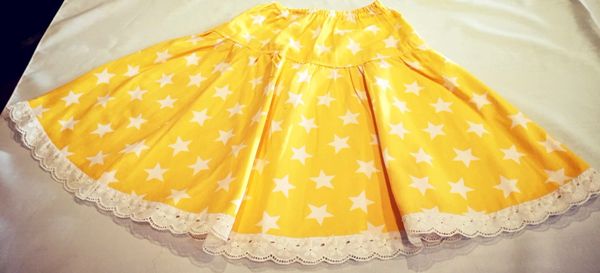 Buttercup Yellow Skirt With White Stars And Lace Trim On Hem line