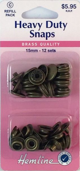 Hemline Heavy Duty Snap Fasteners. 15mm Antique Brass