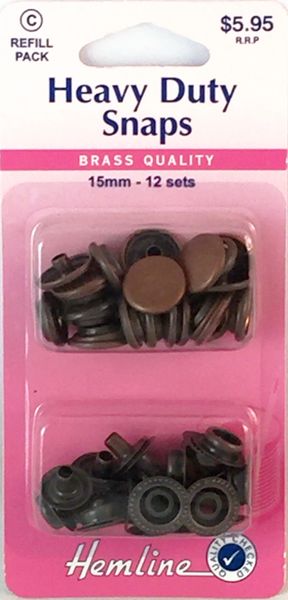 Hemline Heavy Duty Snap Fasteners. 15mm Bronze