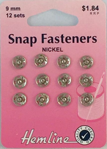 Hemline Metal Snap Fasteners, 9mm Silver.
